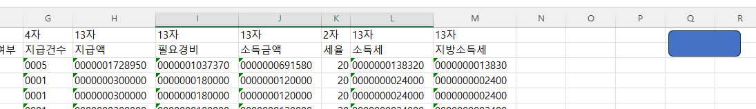 ㄱ. 생성데이터 : 실제 전산매체 파일이 작성되는 시트입니다. 확인용이며 실제 파일은 저장하신 엑셀파일과 동일한 경로에 새롭게 저장됩니다.