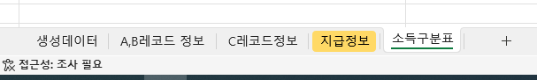 ㄹ. 지급정보 : 실제 개인별로 기타 소득 지급내역을 정리하여 입력해 놓는 시트입니다.