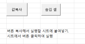 값복사를 하면 안되는 셀을 지정하고 싶은 경우. 셀숨김이 설정된 셀은 해당 매크로가 실행되지 않도록 해놓았습니다.