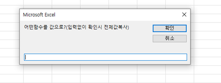 만약 입력없이 확인을 누르면 시트내의 모든 셀을 대상으로 값복사가 이루어집니다.