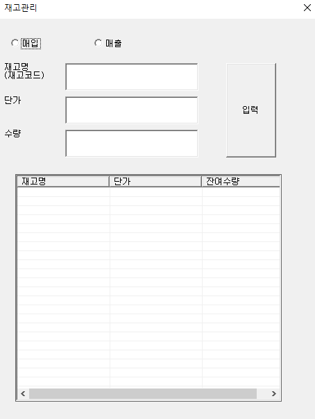재고명과 단가, 수량을 전부 정상적으로 입력 후 입력 버튼을 누르시면 자료에 반영됩니다.