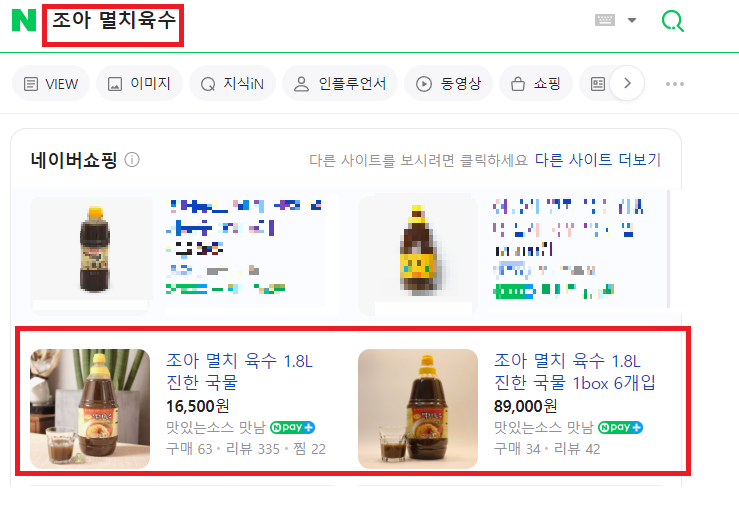 시판되는 멸치육수는 다양합니다.