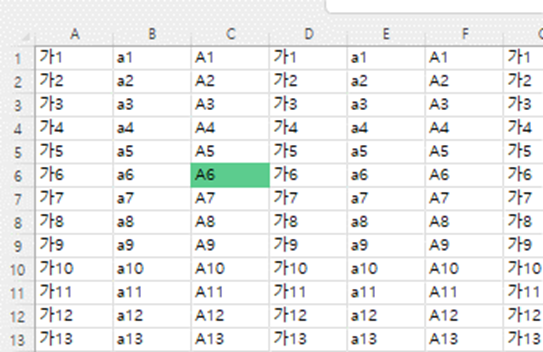 위 그림처럼 에매랄드빛? 으로 현재셀 위치가 표시됩니다. 비활성화 여부와 상관없이 가장 최근의 셀을 표시해주는 기능입니다.