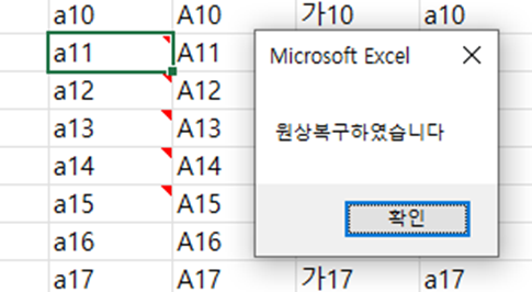 이럴 때 공유드린 매크로를 실행시켜주세요.
